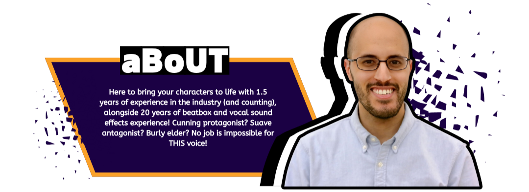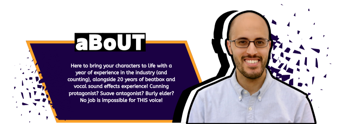 Beatboxing (20 years of experience; collaborated with Gene Shinozaki and Mark Martin)Accents: Arab, Scottish, British (RP/London), SpanishBaritone range; can perform teenage, adolescent, young adult, and senior voicesAbility to add raspiness for grittier rolesCan apply all listed accents naturally into character work